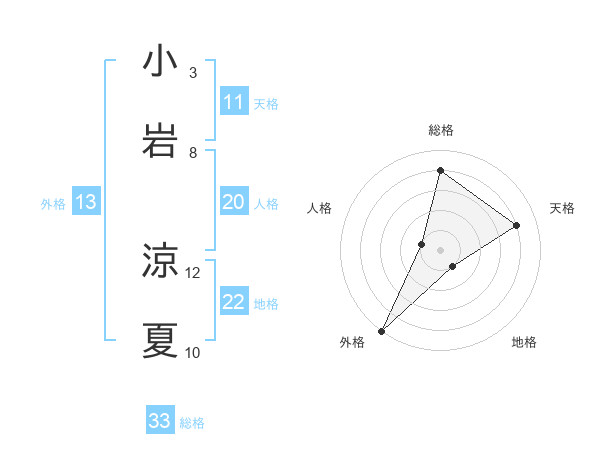 小岩 涼夏さんを姓名の画数から五運を鑑定