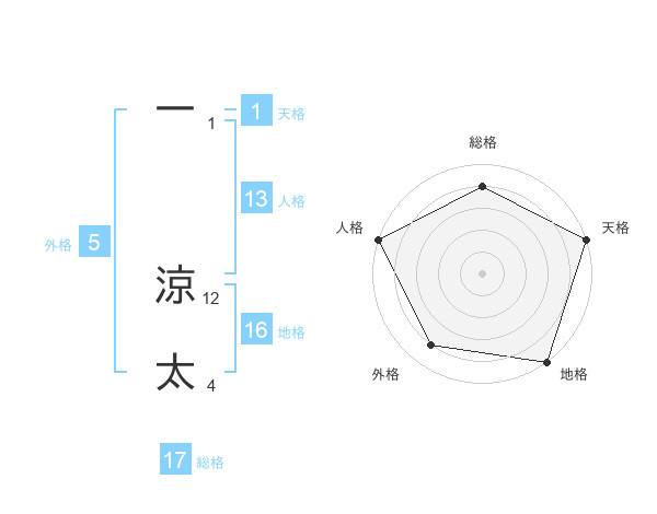 一 涼太さんの地格は16画の5点!