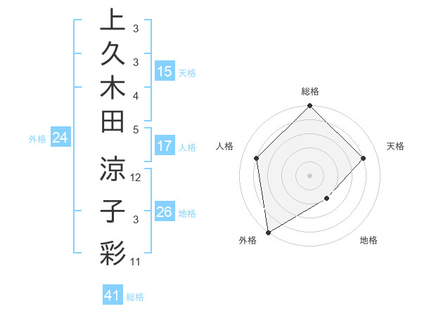 上久木田 涼子彩さんを姓名の画数から五運を鑑定