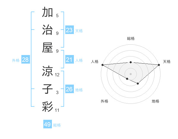 加治屋 涼子彩さんを姓名の画数から五運を鑑定