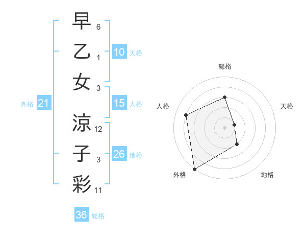 早乙女 涼子彩さんの総格は36画の3点