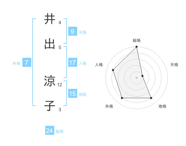 井出 涼子さんの総格は24画の5点!