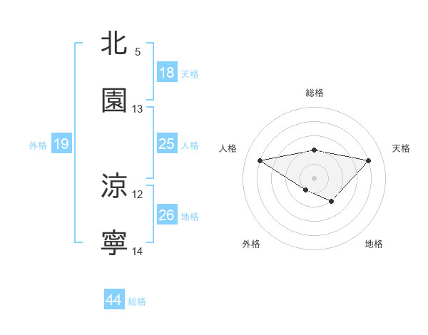 北園 涼寧さんを姓名の画数から五運を鑑定
