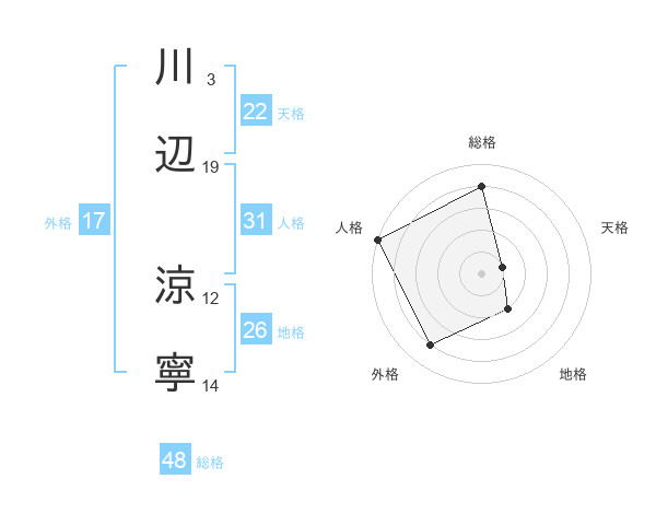 川辺 涼寧さんの総格は48画の4点!