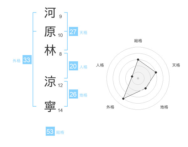 河原林 涼寧さんを姓名の画数から五運を鑑定