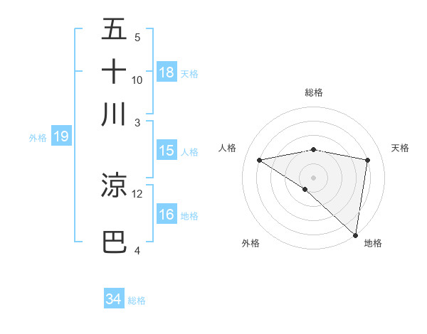 五十川 涼巴さんを姓名の画数から五運を鑑定