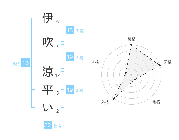 伊吹 涼平いさんを姓名の画数から五運を鑑定