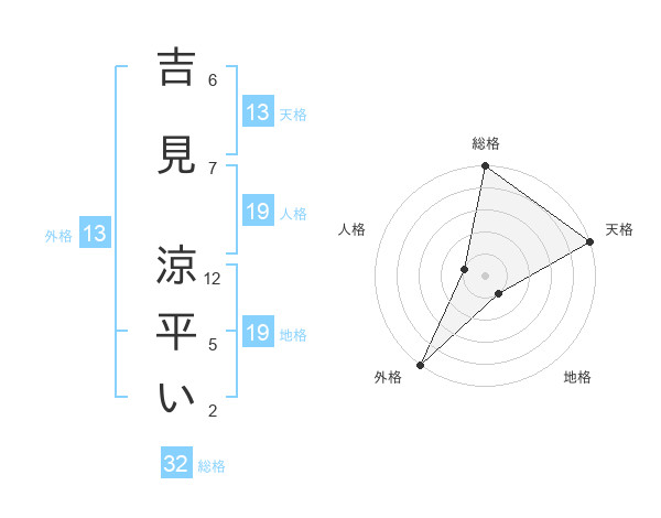 吉見 涼平いさんを姓名の画数から五運を鑑定