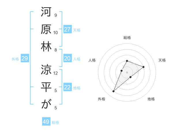 河原林 涼平がさんを姓名の画数から五運を鑑定