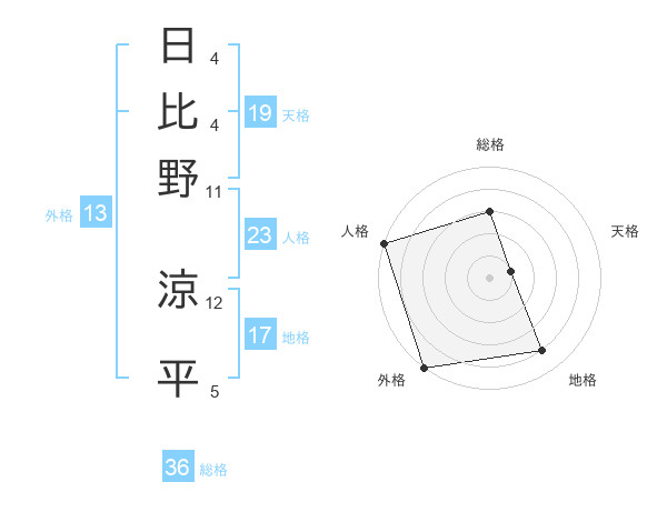 日比野 涼平さんを姓名の画数から五運を鑑定