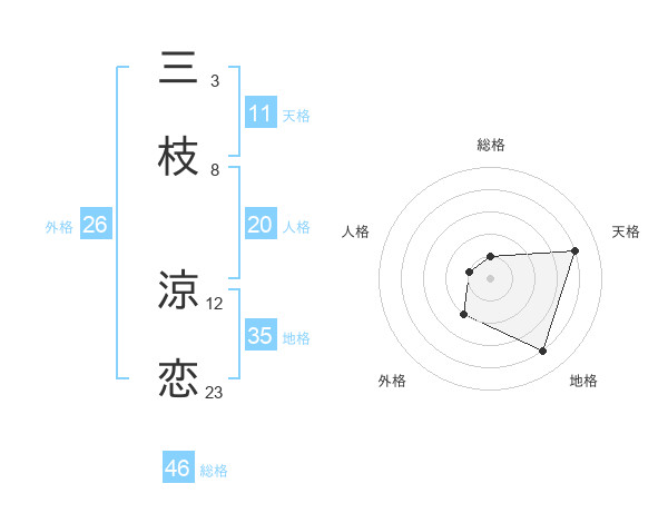 三枝 涼恋さんを姓名の画数から五運を鑑定