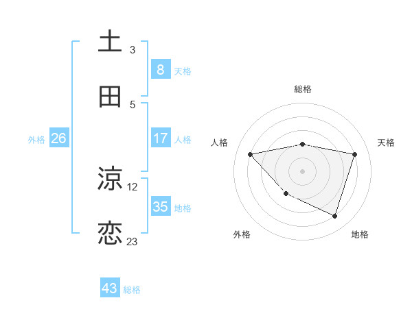 土田 涼恋さんを姓名の画数から五運を鑑定