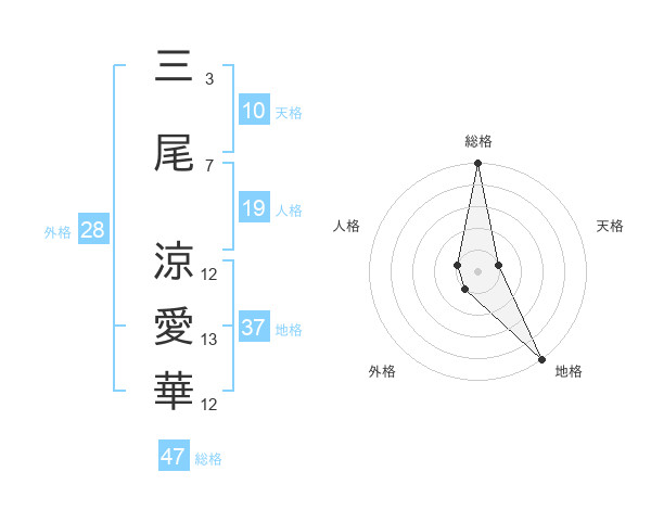 三尾 涼愛華さんを姓名の画数から五運を鑑定