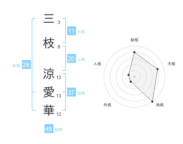 三枝 涼愛華さんを姓名の画数から五運を鑑定