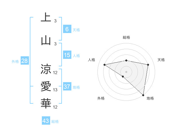 上山 涼愛華さんを姓名の画数から五運を鑑定