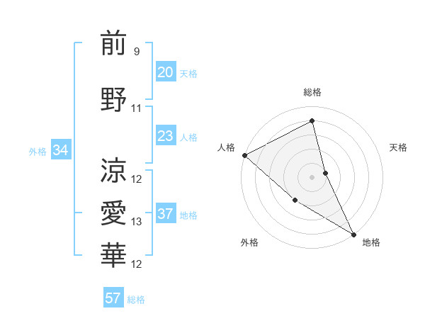 前野 涼愛華さんを姓名の画数から五運を鑑定