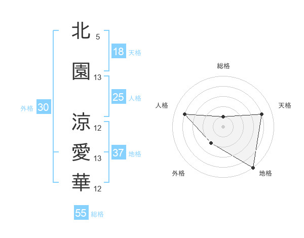 北園 涼愛華さんを姓名の画数から五運を鑑定