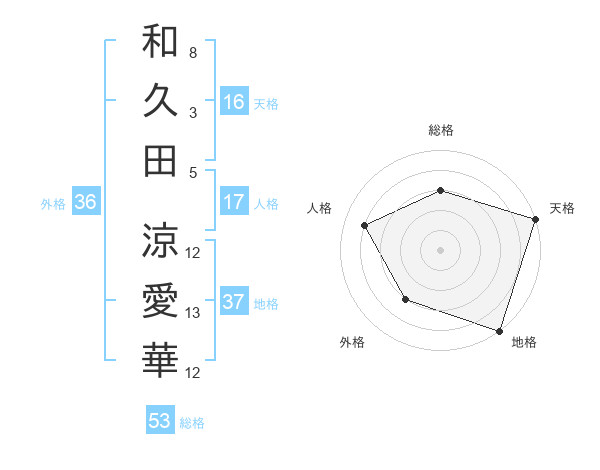 和久田 涼愛華さんの天格は16画の5点