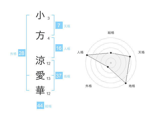 小方 涼愛華さんを姓名の画数から五運を鑑定
