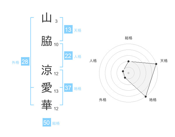 山脇 涼愛華さんを姓名の画数から五運を鑑定