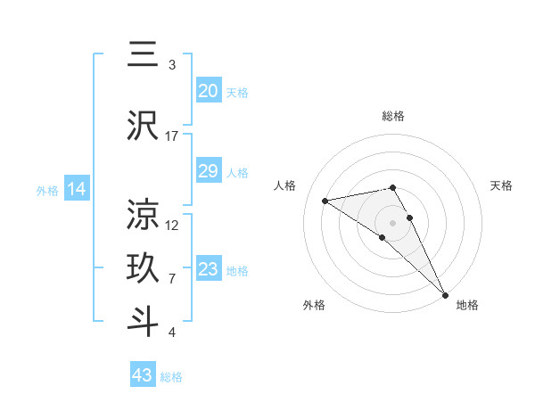 三沢 涼玖斗さんの地格は23画の5点!