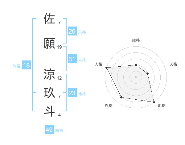 佐願 涼玖斗さんの総格は49画の2点!