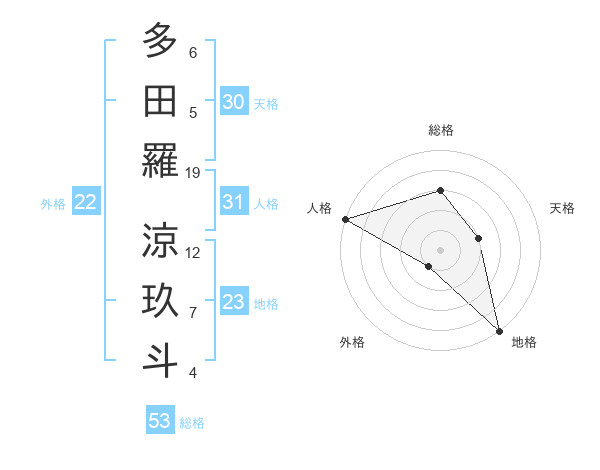 多田羅 涼玖斗さんを姓名の画数から五運を鑑定
