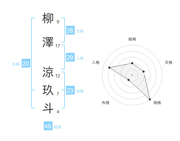 柳澤 涼玖斗さんを姓名の画数から五運を鑑定