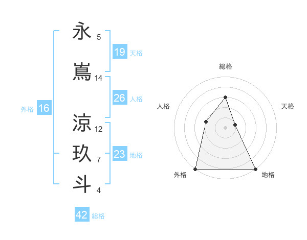 永嶌 涼玖斗さんの外格は16画の5点!