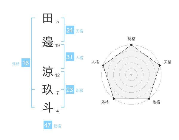 田邊 涼玖斗さんを姓名の画数から五運を鑑定