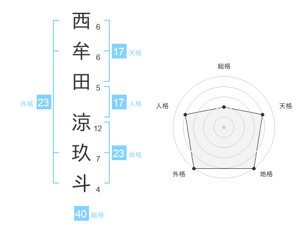 西牟田 涼玖斗さんを姓名の画数から五運を鑑定
