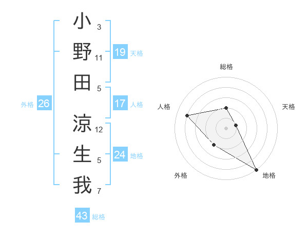 小野田 涼生我さんを姓名の画数から五運を鑑定