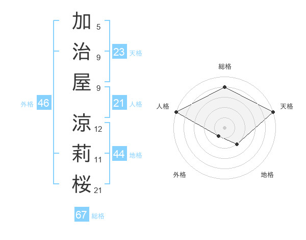 加治屋 涼莉桜さんを姓名の画数から五運を鑑定