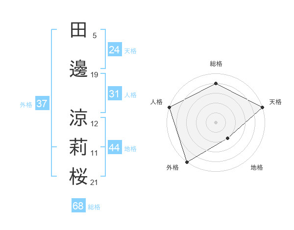 田邊 涼莉桜さんの総格は68画の4点!