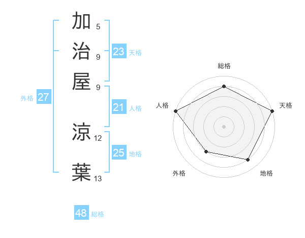 加治屋 涼葉さんの天格は23画の5点!
