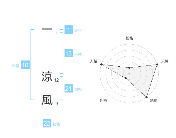 一 涼風さんの総格は22画の1点!