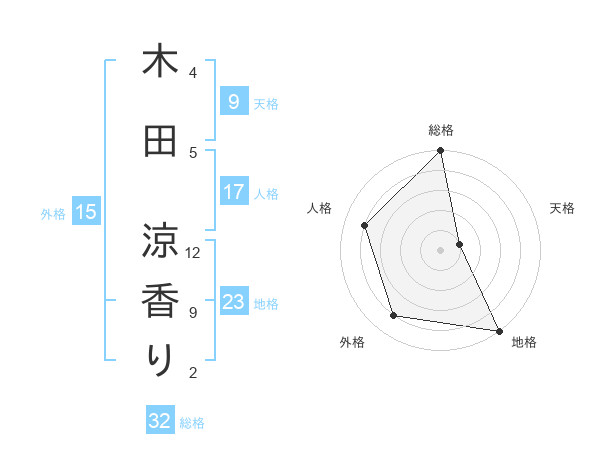 木田 涼香りさんを姓名の画数から五運を鑑定
