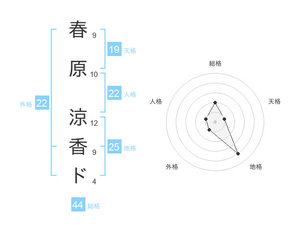 春原 涼香ドさんを姓名の画数から五運を鑑定