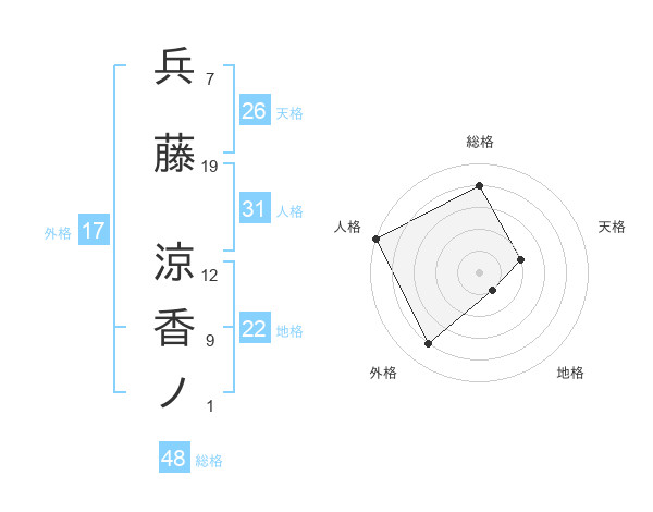 兵藤 涼香ノさんを姓名の画数から五運を鑑定