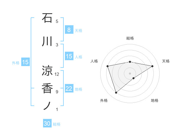 石川 涼香ノさんの総格は30画の2点!