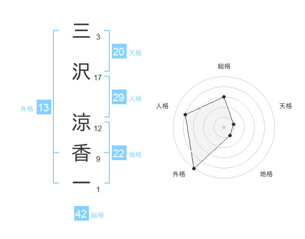 三沢 涼香一さんを姓名の画数から五運を鑑定