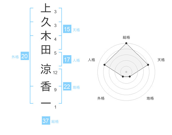 上久木田 涼香一さんの総格は37画の5点!