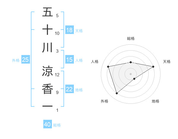 五十川 涼香一さんを姓名の画数から五運を鑑定