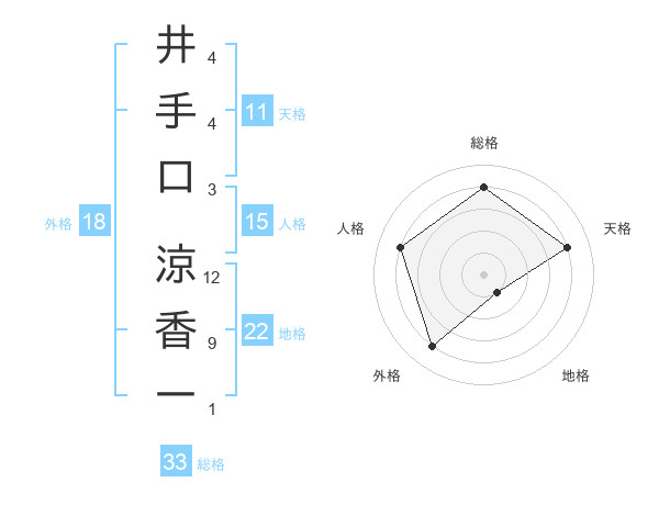 井手口 涼香一さんを姓名の画数から五運を鑑定