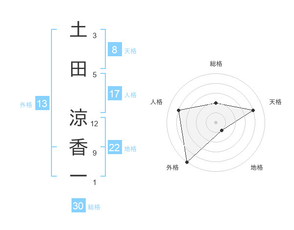 土田 涼香一さんを姓名の画数から五運を鑑定