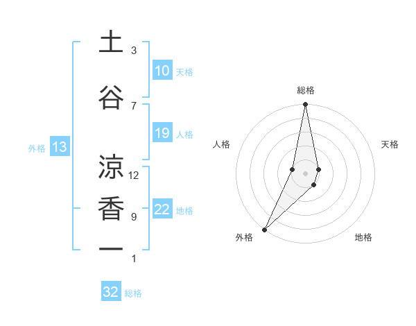 土谷 涼香一さんを姓名の画数から五運を鑑定