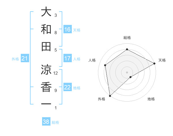 大和田 涼香一さんを姓名の画数から五運を鑑定