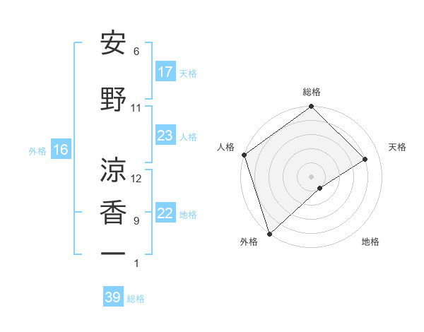 安野 涼香一さんを姓名の画数から五運を鑑定
