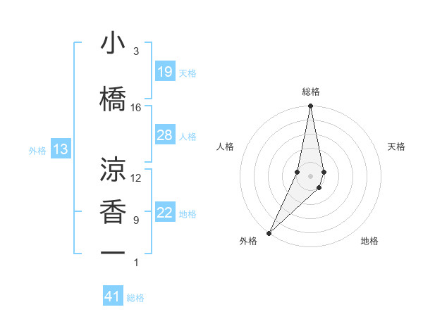 小橋 涼香一さんの外格は13画の5点!
