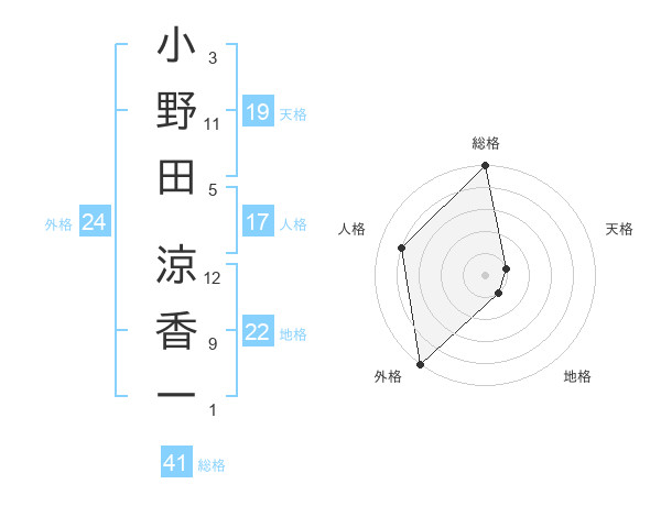 小野田 涼香一さんを姓名の画数から五運を鑑定